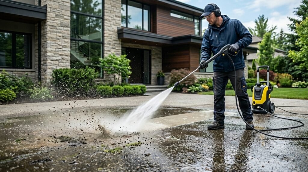 Powerful cleaning for outdoor surfaces such as driveways, walls, and pavements, restoring their clean appearance.